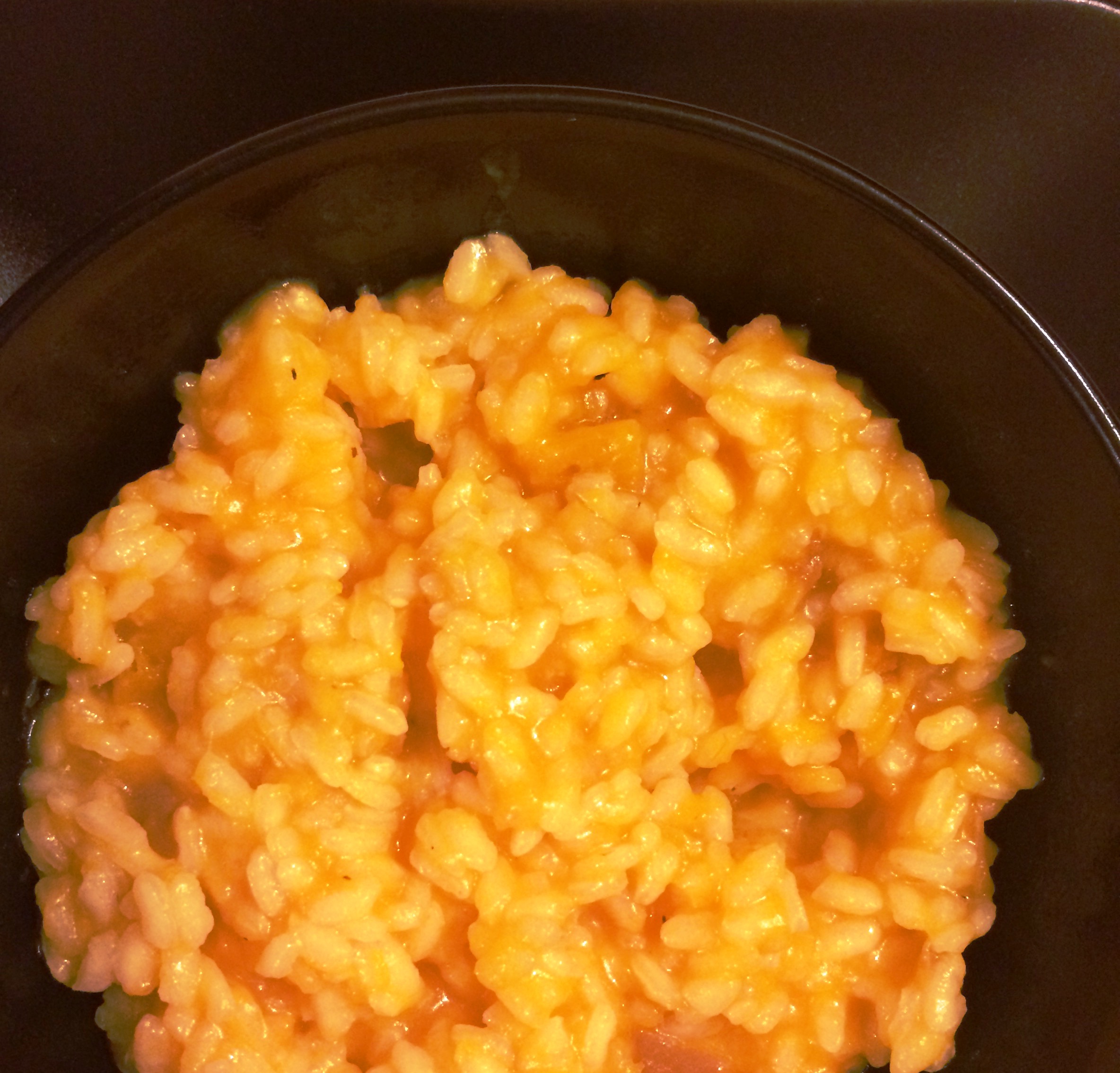 Tutto si tinge lentamente d’arancio. I frutti sugli alberi, le prime foglie cadute ai lati delle strade. Gli splendidi tramonti di ottobre, che dopo giornate ancora molto calde precedono di pochi istanti piccoli brividi sulla pelle, la voglia di infilarsi una felpa, o sotto una coperta… E poi c’è lei, la zucca, la regina d’autunno. Ho inaugurato la stagione con un classico risotto, che grazie alla bontà della materia prima ho cotto semplicemente con dell’acqua: però mi raccomando, assicuratevi di avere una zucca veramente buona, altrimenti usate il brodo vegetale. Io avevo una zucca “noce di burro” (di cui ho usato anche la buccia), ma anche una mantovana va benissimo, sono entrambe dolcissime, corpose e molto saporite.