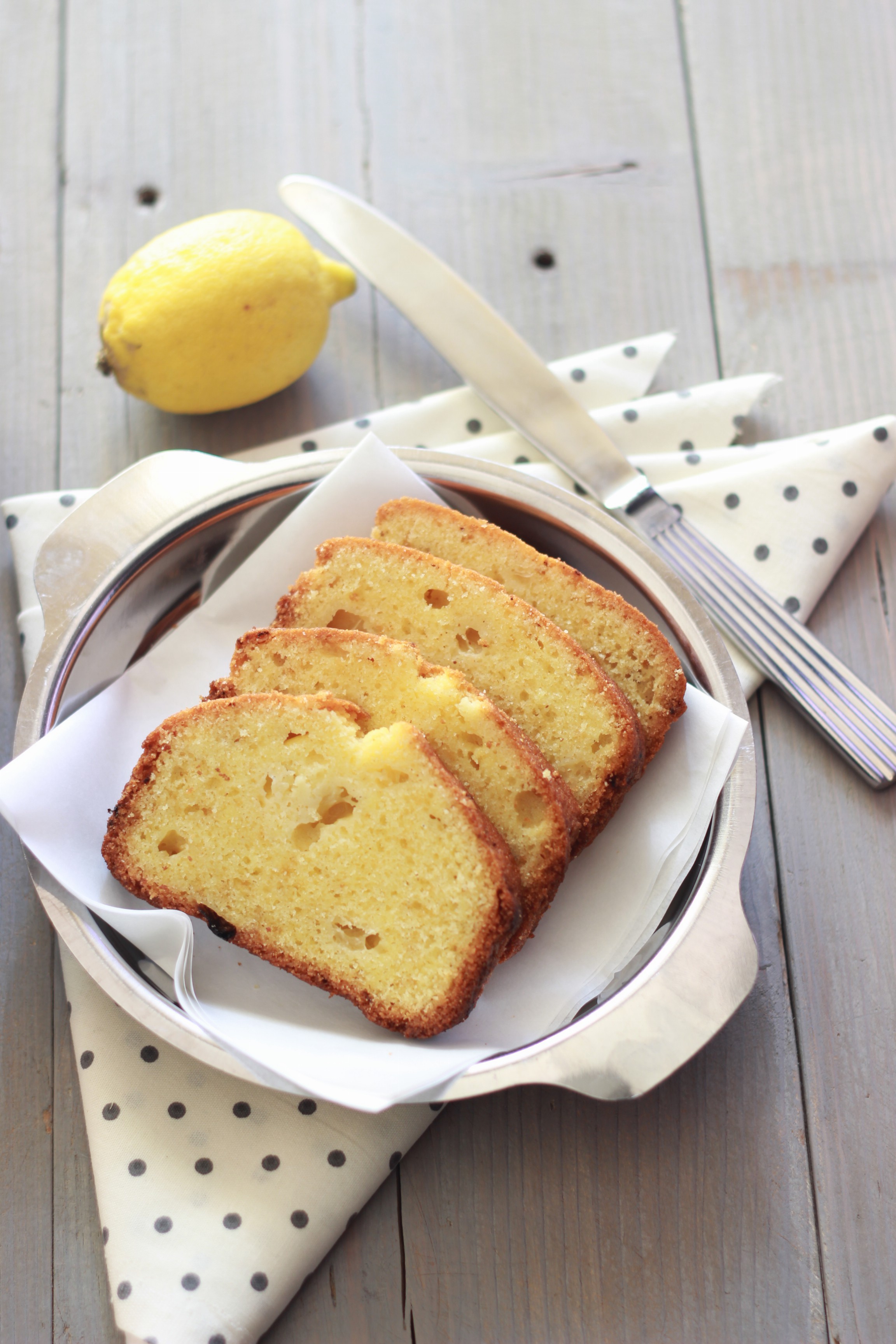 Il principio di composizione di una quattro quarti è sempre stato per me un po’ inquietante, nella sua semplicità: stesso peso di uova, burro, zucchero e farina. Cioè, messa così non è il genere di dolce che mangio proprio a cuor leggero, as usual, e quindi in buona sostanza non l’avevo mai fatta. L’occasione si è però presentata quando Fabio mi ha regalato un paio dei suoi splendidi limoni durante una delle mie sortite bucoliche. Cercando di fare mente locale sul modo migliore di utilizzarli mi è tornata in mente questa versione, nella quale non si utilizza solo la scorza del limone, ma anche i suoi spicchi, messi direttamente dentro all’impasto, a pezzi. Così ho pensato che per una volta la quattro quarti la potevo anche fare. Ma si. Del resto anch’io sono a pezzi. Ho esaurito tutte le mie energie, non faccio che dormire quando ho un po’ di tempo libero e ho bisogno che questo letargo finisca, che la natura riesploda, l’aria profumi e le giornate si allunghino. Ho bisogno di Marzo, per farla breve, il mio mese preferito.
