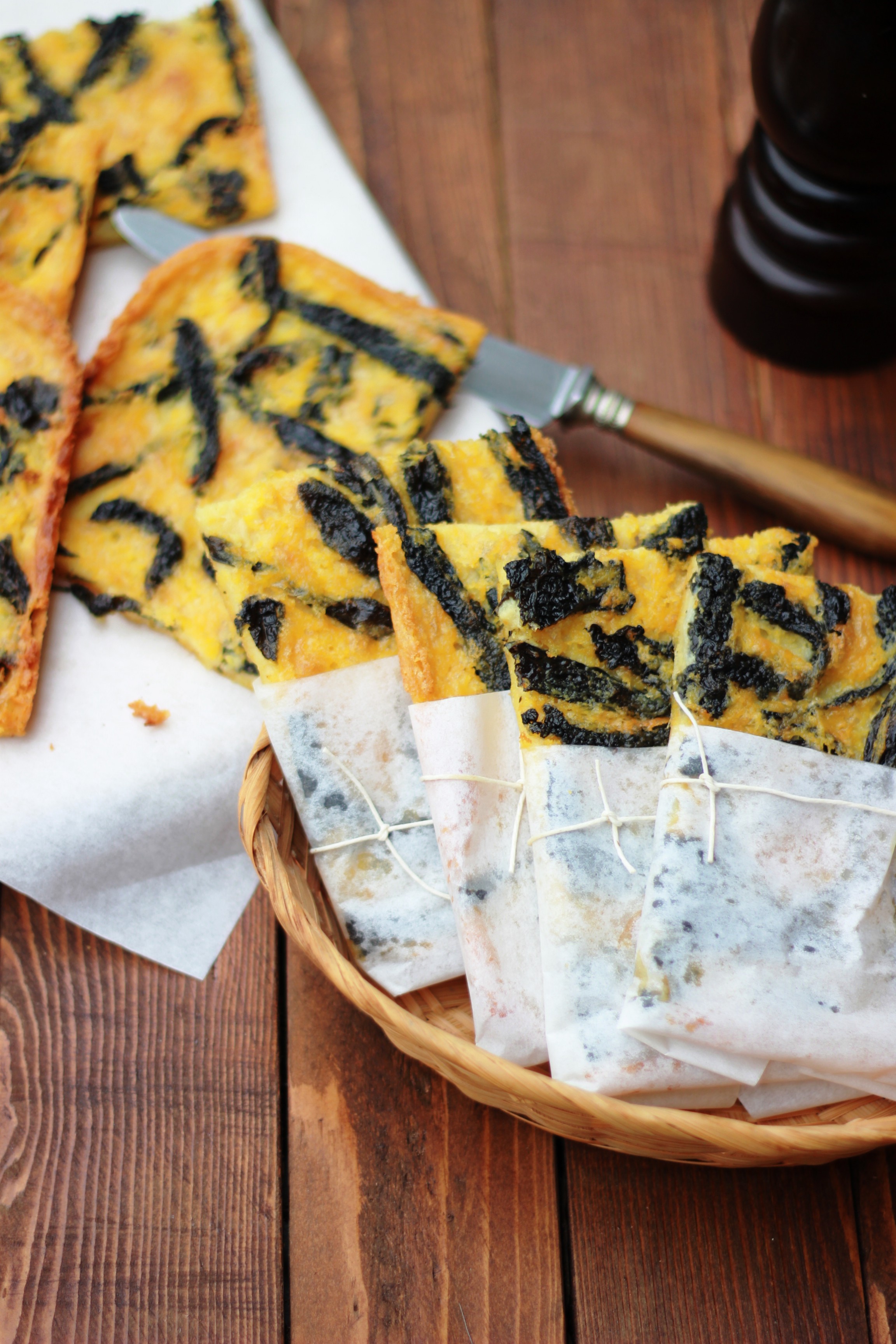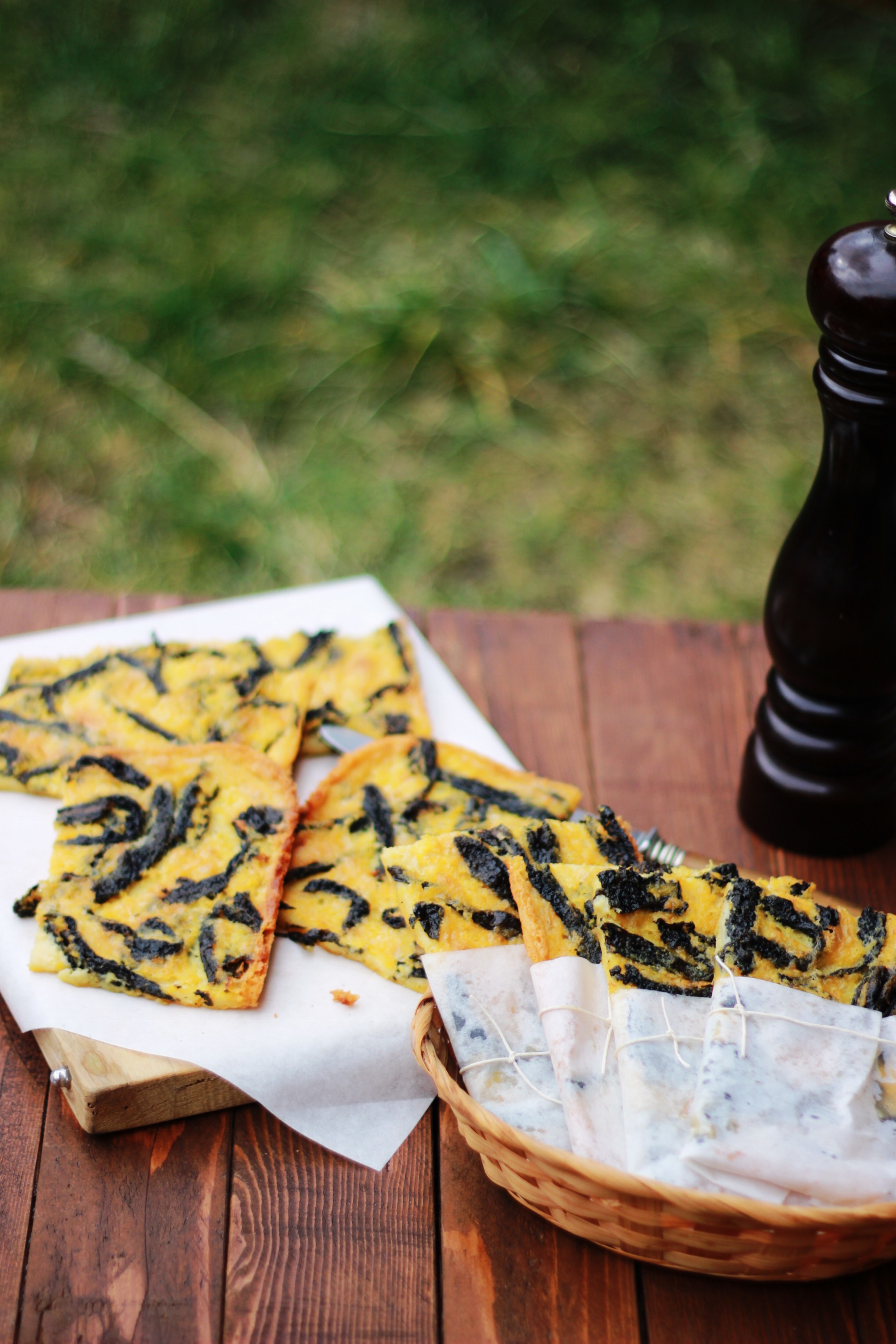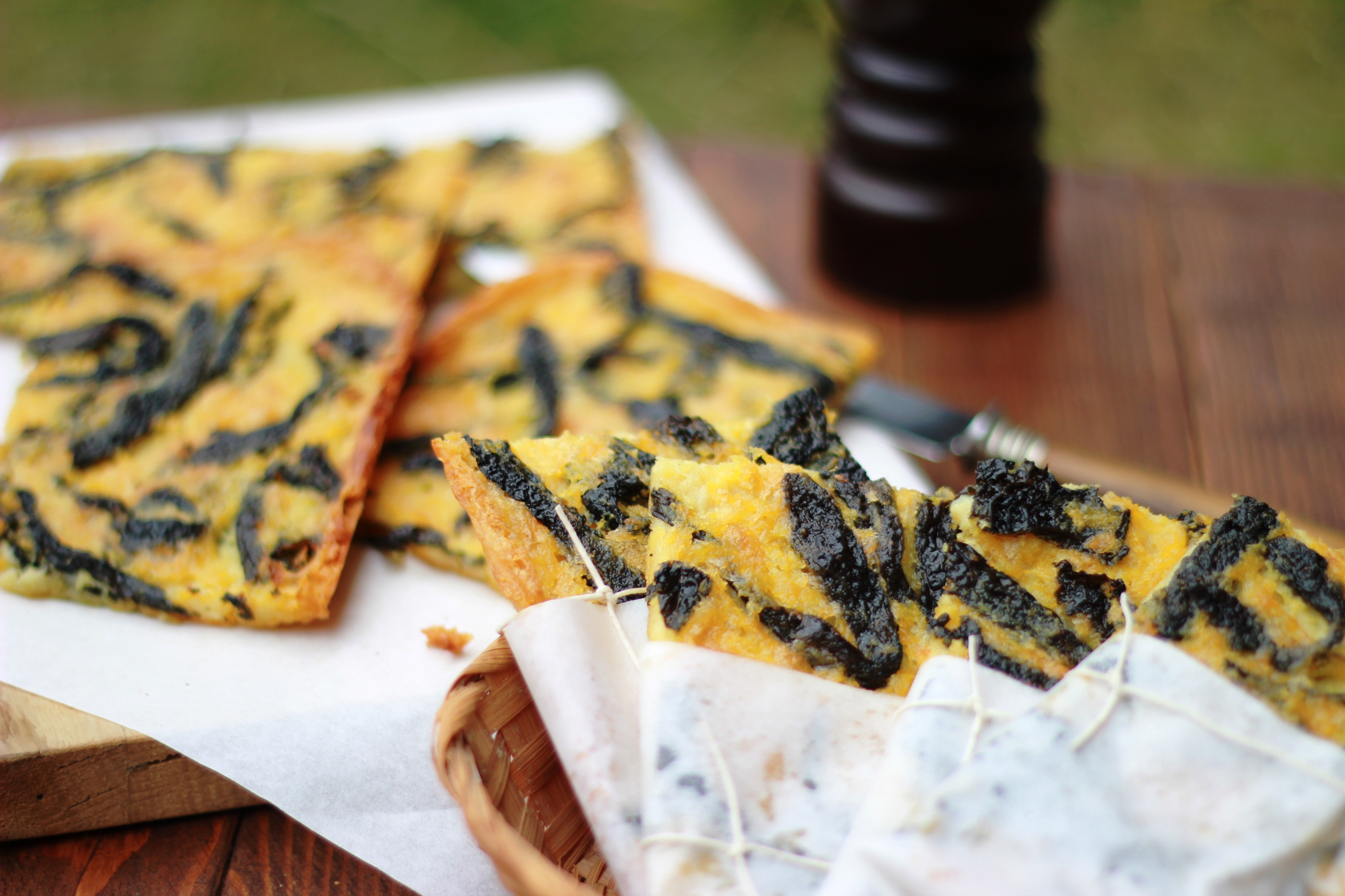 Ungete a questo punto una teglia con dell’olio e versate l’impasto in uno strato di 3-4 millimetri. Aggiungete le striscioline di cavolo nero che avete cotto e infornate per 20-25 minuti, finché sarà dorata e croccante fuori e morbida all’interno. Servita calda con abbondante pepe nero macinato al momento.