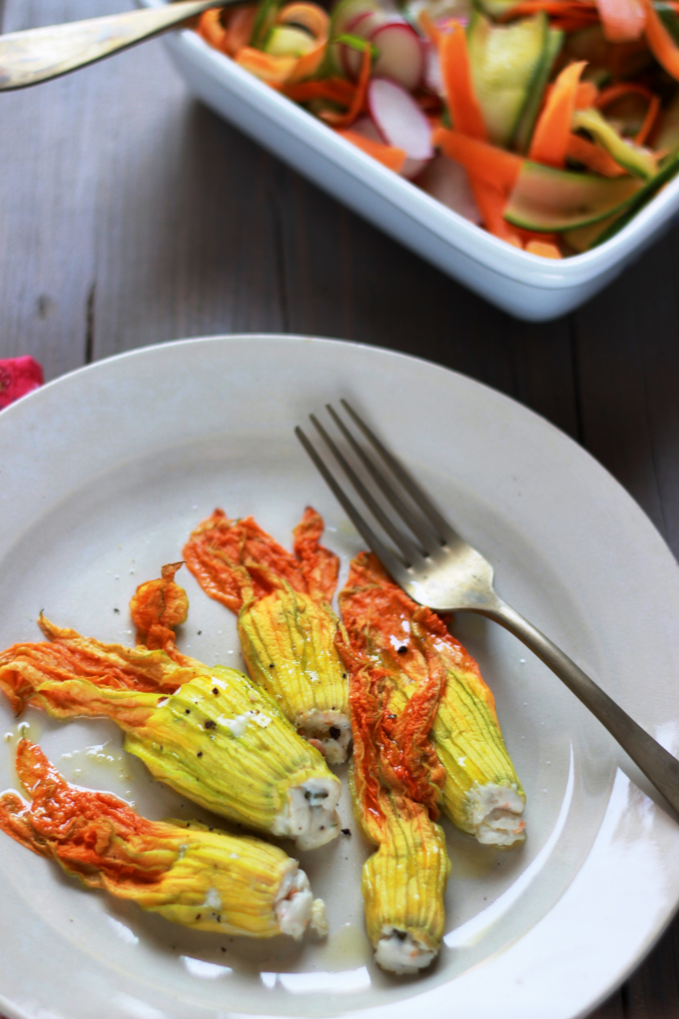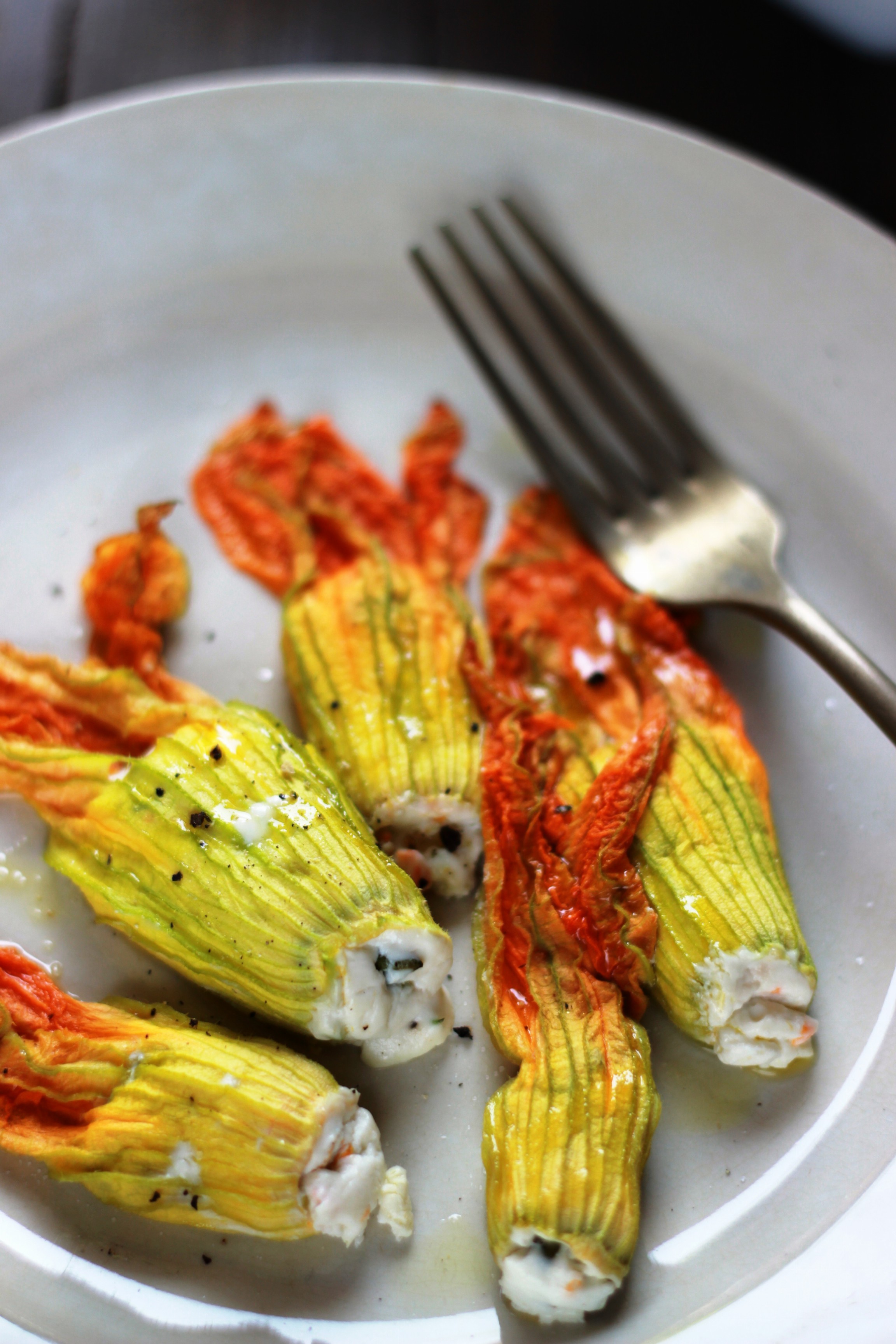 Piano B. Fiori di zucca ripieni di ricotta e menta