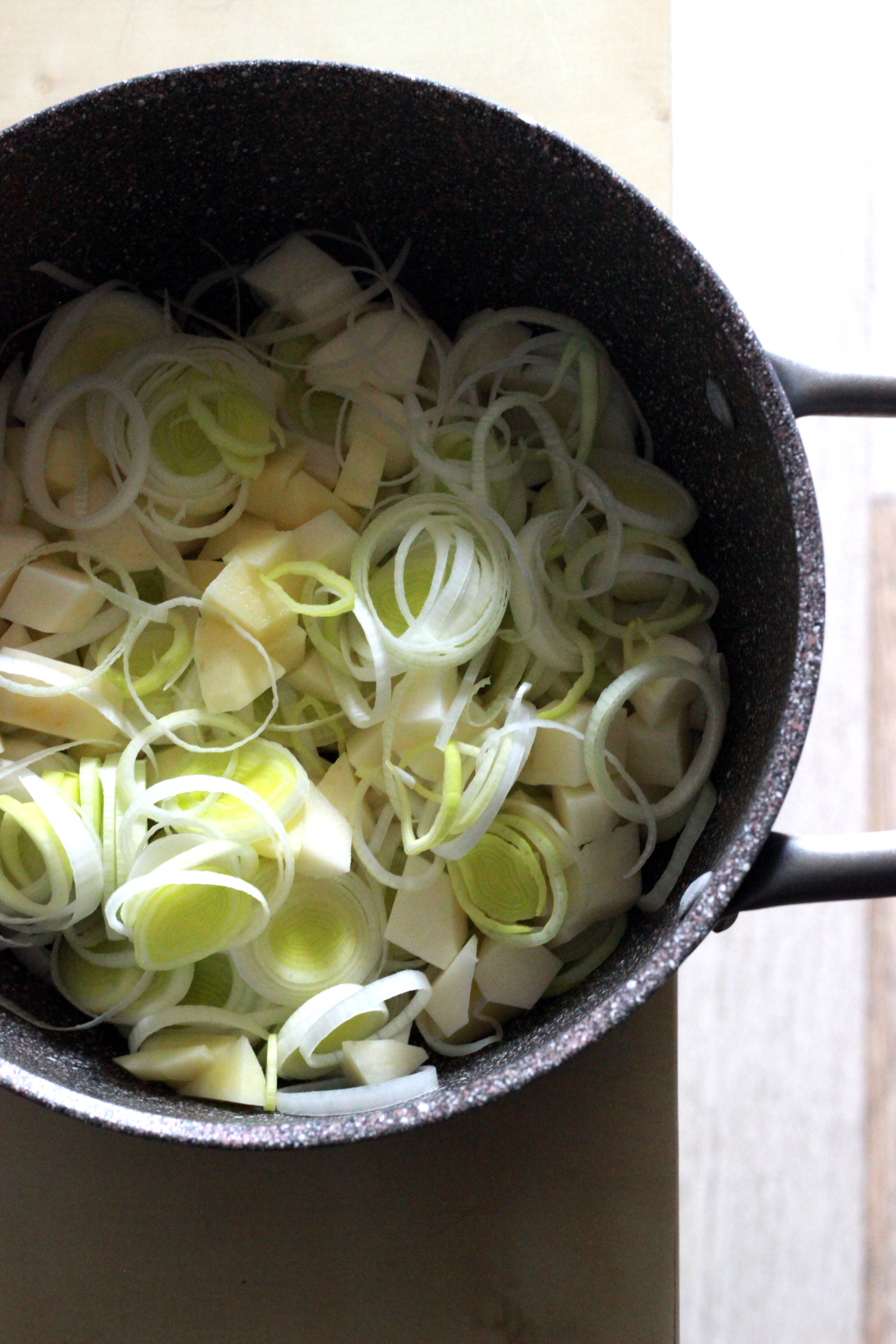 Vellulata di porri, patate e nocciole