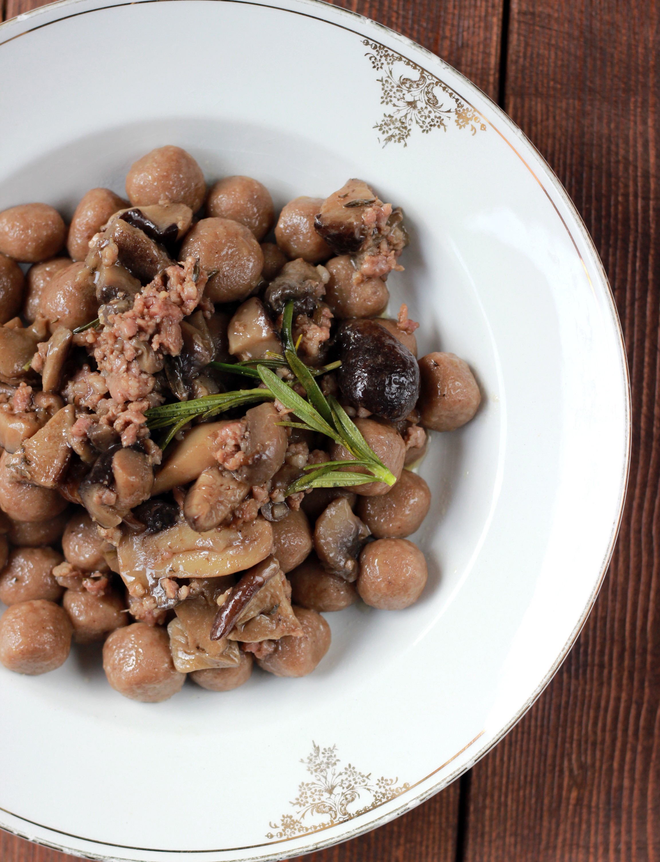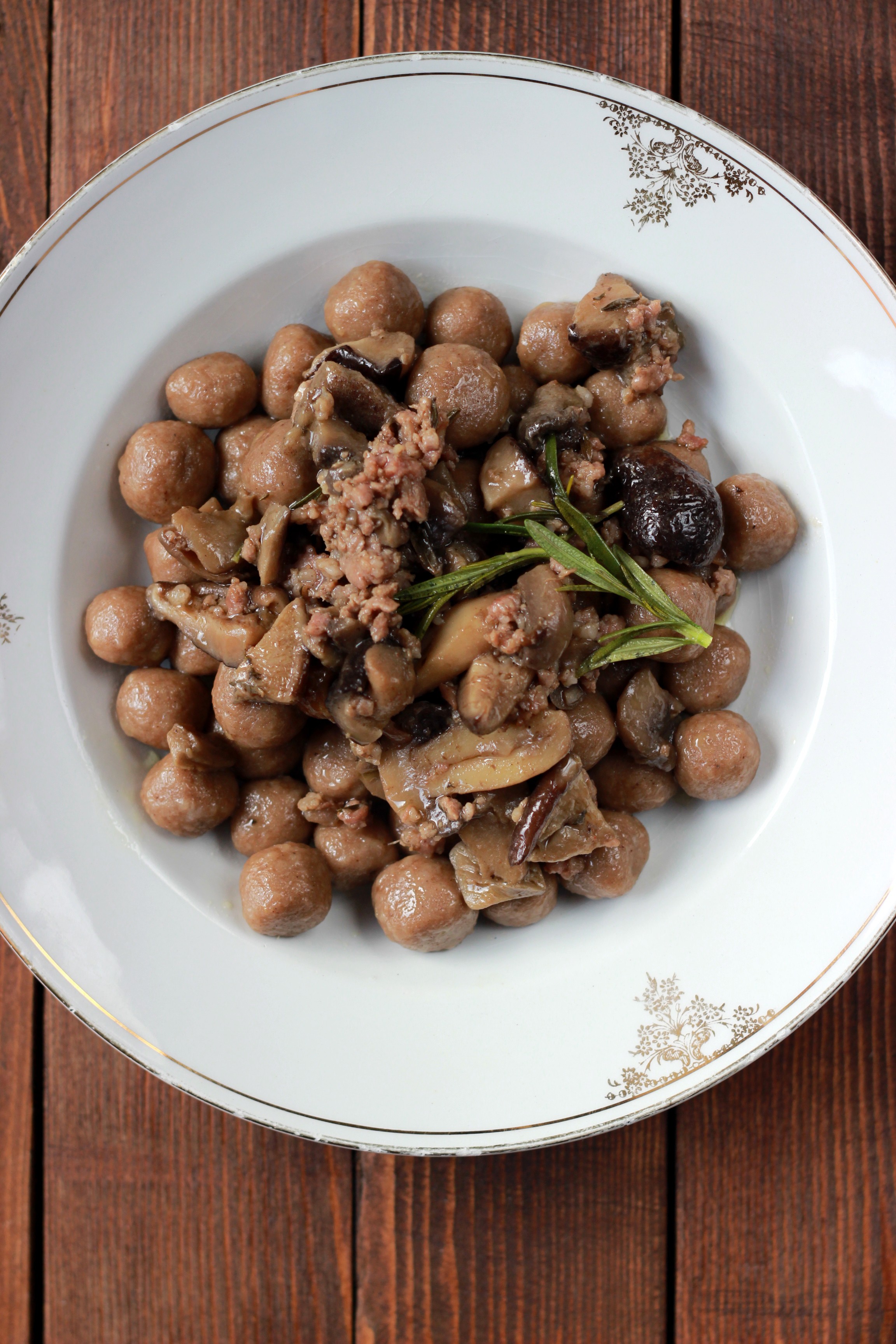 Gnocchi di castagne con funghi e salsiccia: (per 4)