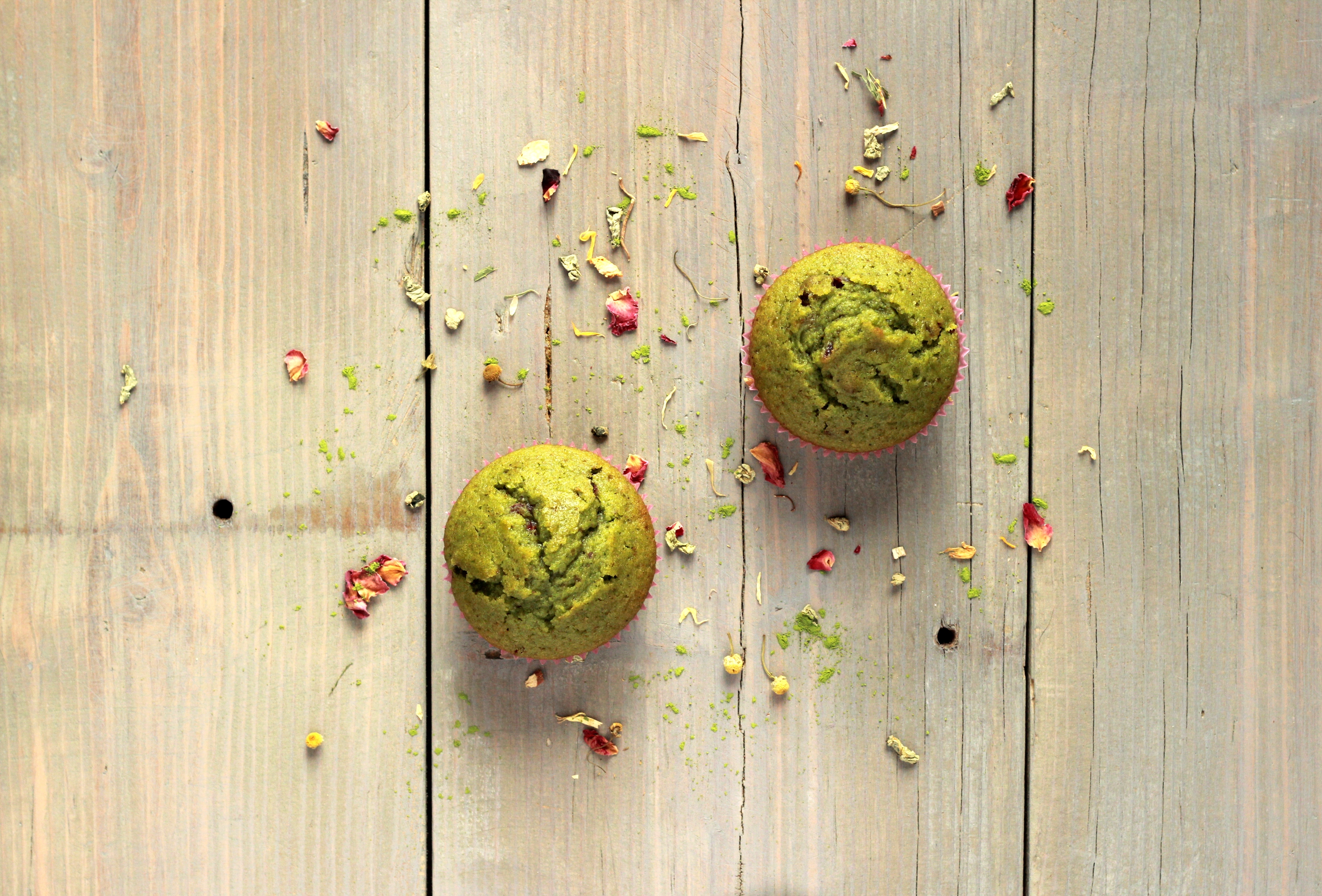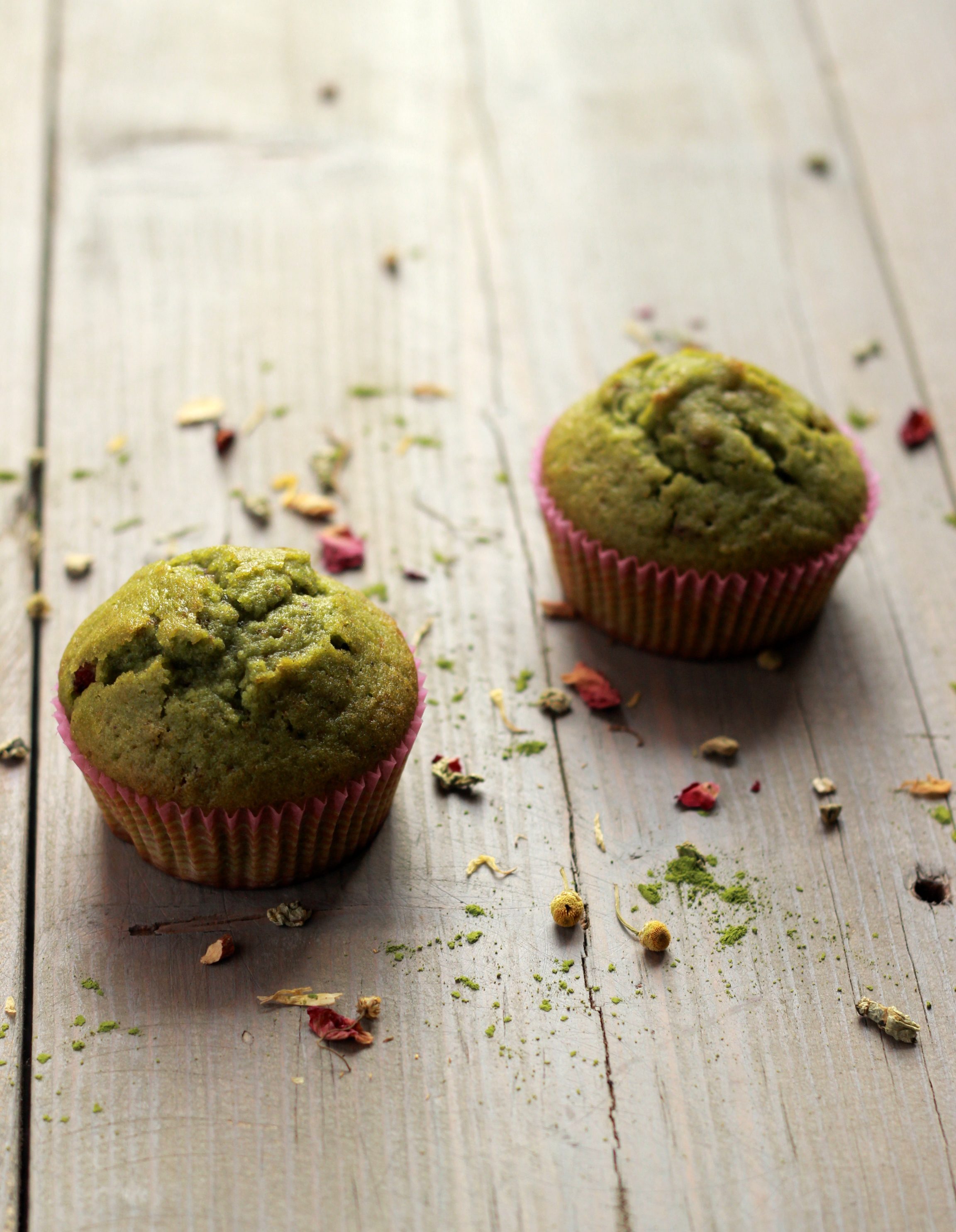 Ho conosciuto il thè matcha qualche anno fa, mentre scaldavo la sedia in ufficio e mi scaldavo l’anima girando per blog durante la mia pausa pranzo. Il matcha è un thè cinese verdissimo, ottenuto dalla complessa lavorazione delle foglie, che vengono cotte a vapore e quindi ridotte in polvere finissima e impalpabile. Ingrediente- feticcio di molte blogger e chimera per molti anni, sia perché quasi introvabile sia perché costosissimo, è finalmente arrivato nelle mie mani durante una visita ad un tempio buddista del Nord-Italia, che lo vendeva ad un prezzo tutto sommato equo: ed eccoci qua. La scorsa domenica ho invitato un gruppo di amici per una sorta di cerimonia del thè delle cinque e per fare due chiacchiere: su gentile invito di mia sorella a produrre muffins adatti all’occasione ho pensato a quella bustina di matcha che giaceva inutilizzata in dispensa. Ho unito una manciata di mirtilli rossi secchi all’impasto e, una volta cotti, li ho accompagnati con una tisana ai fiori di loto, anch’essa acquistata al tempio. Fra le cose che adoro infatti ci sono anche i muffin della domenica. Mi piace prepararli dopo pranzo e poi mandare gli inviti alle persone, che di solito ad un muffin non rinunciano mai! Mi piace l’atmosfera che si crea quando il sole è ormai tramontato e l’acqua bolle sul fuoco. Mi piacciono le chiacchiere da divano e le tazze fumanti e profumate. E la cosa che amo di più di questi momenti è incartare i muffins rimasti e regalarli per la colazione dell’ indomani 🙂