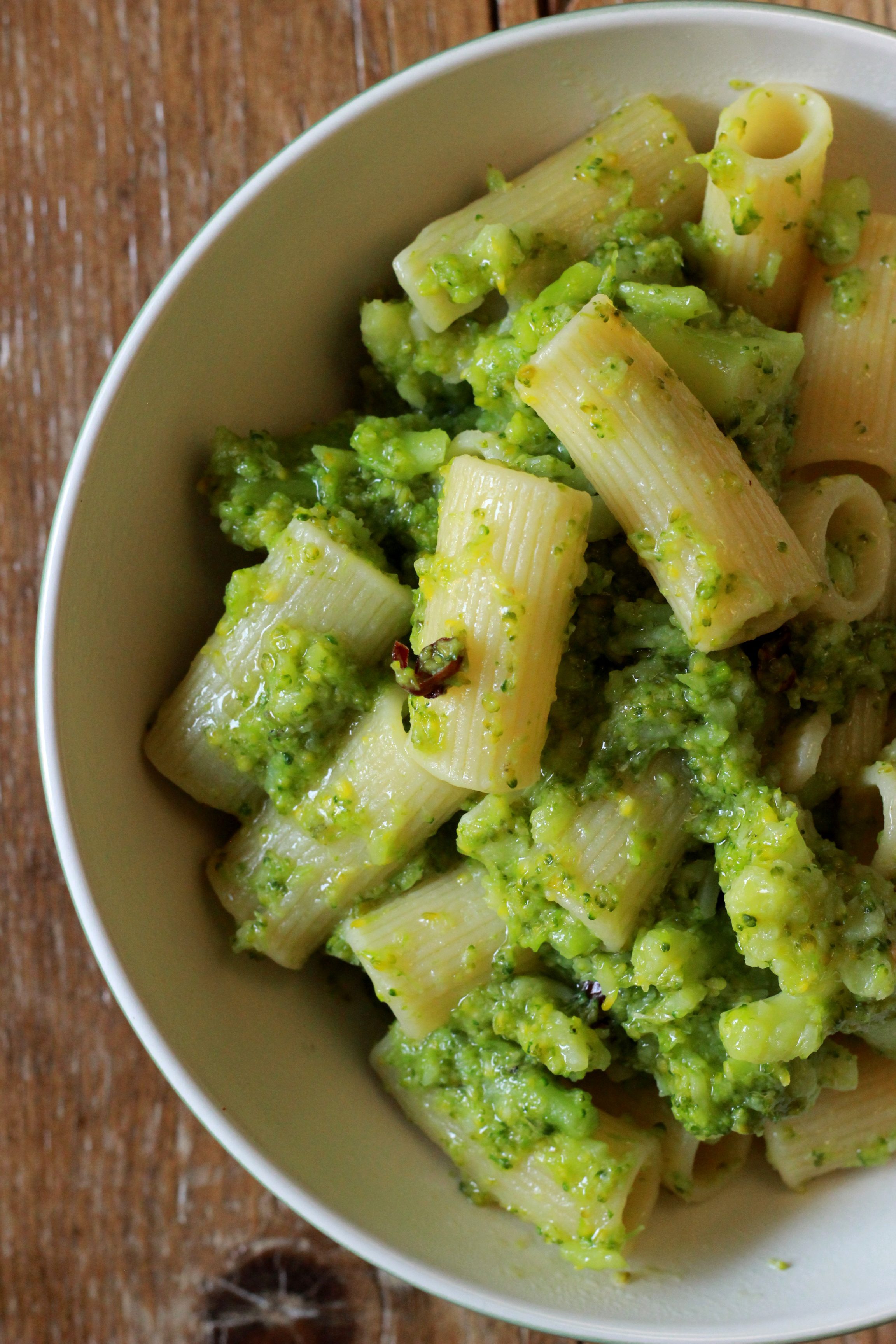 La pasta coi broccoletti l’ho ereditata da mia madre. E’ una di quelle ricette facilissime da fare ma che sono così gustose che non si possono dire a parole, vanno semplicemente provate. Il profumo dell’aglio e del peperoncino che avvolgono questa pasta sfuggono a qualsiasi tentativo di descrizione. E’ una ricetta del Sud-Italia, dove spesso le verdure si cuociono direttamente nell’acqua con la pasta: mia nonna fa così anche le orecchiette con le cime di rapa, ma questo blog è troppo giovane, e le mie mani troppo inesperte, per postare le orecchiette fatte a mano. Da cui i rigatoni 😀 Ma forse, e dico forse, fra qualche settimana potrei inaugurare la stagione della pasta fresca di Soul of Food. Perché ho fatto il grande passo: mi sono iscritta alla scuola professionale di cucina, e dalla settimana scorsa sono alle prese tutte le mattine con roux, fondi, creme, zuppe, vellutate e da ieri con gnocchi, pici e tagliatelle 🙂 La sveglia presto mi ha voluto vedere in faccia perché mi ero un tantino viziata ultimamente, ma il motore è forte, anzi fortissimo: il mio progetto di vita sta prendendo finalmente forma e inizia fra i banchi, anzi, tra i fornelli. Così oggi vi lascio questa ricetta delle mie origini, mentre spicco il volo verso nuovi orizzonti, culinari e spero presto anche professionali 🙂