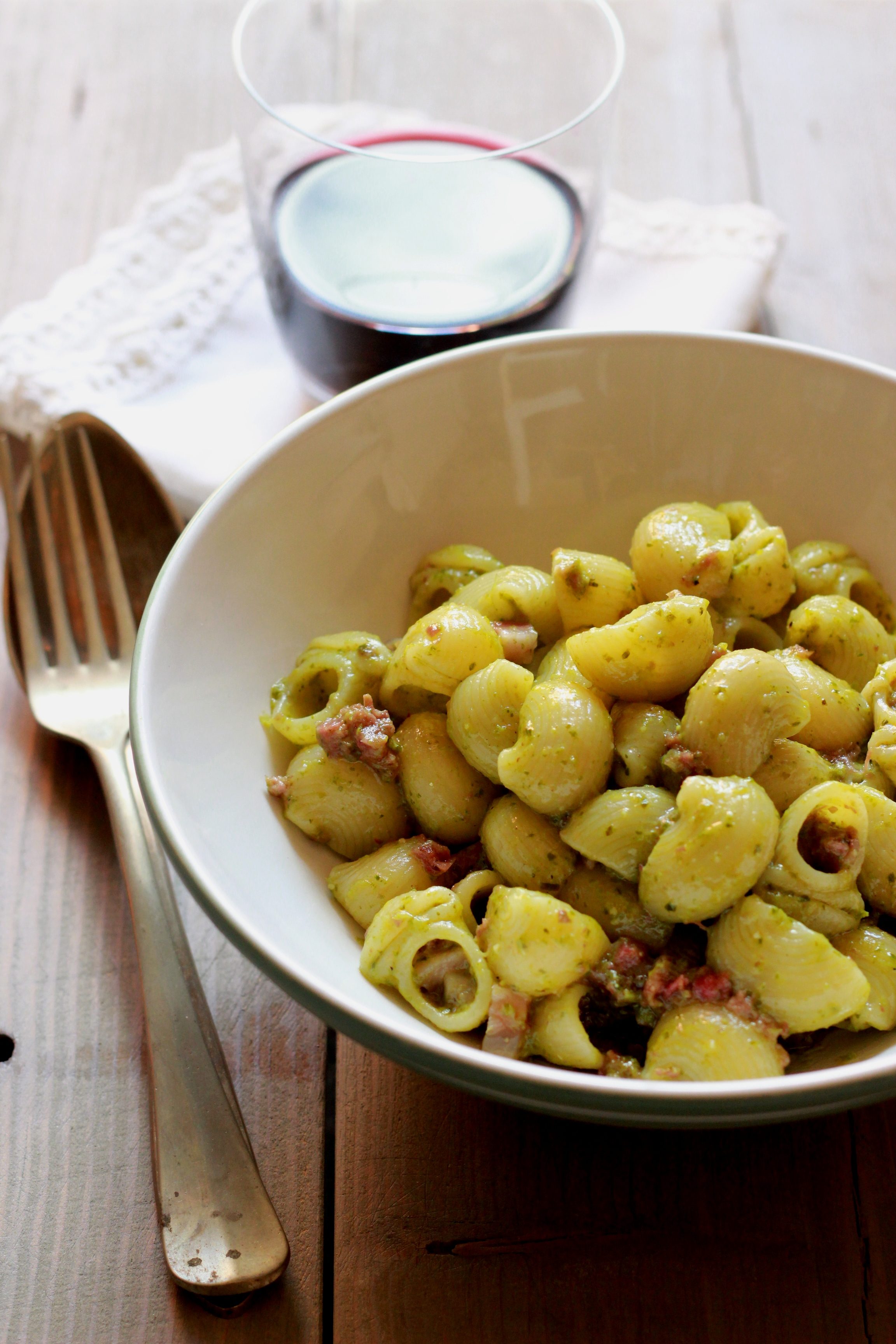 Pasta al pesto e soppressata