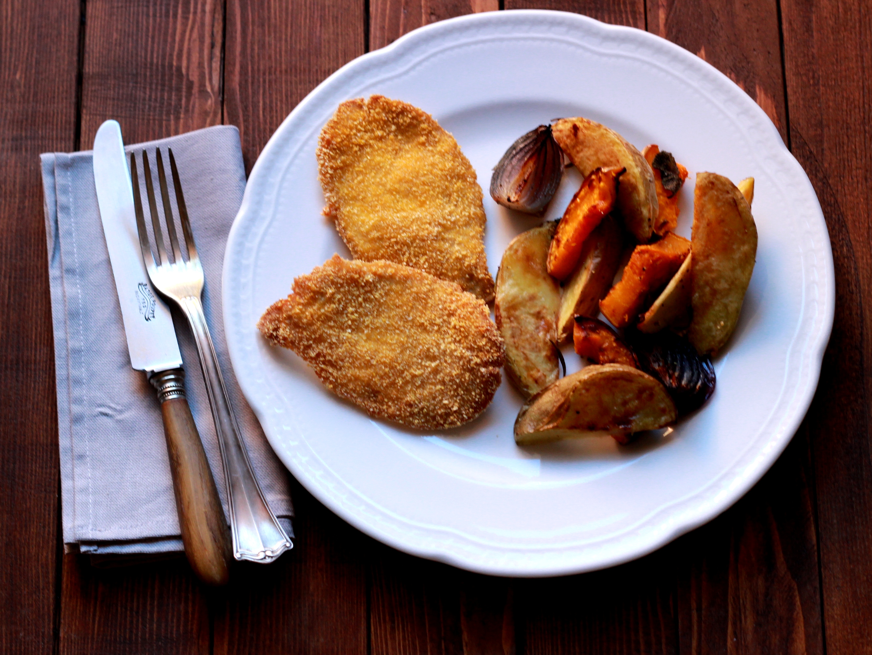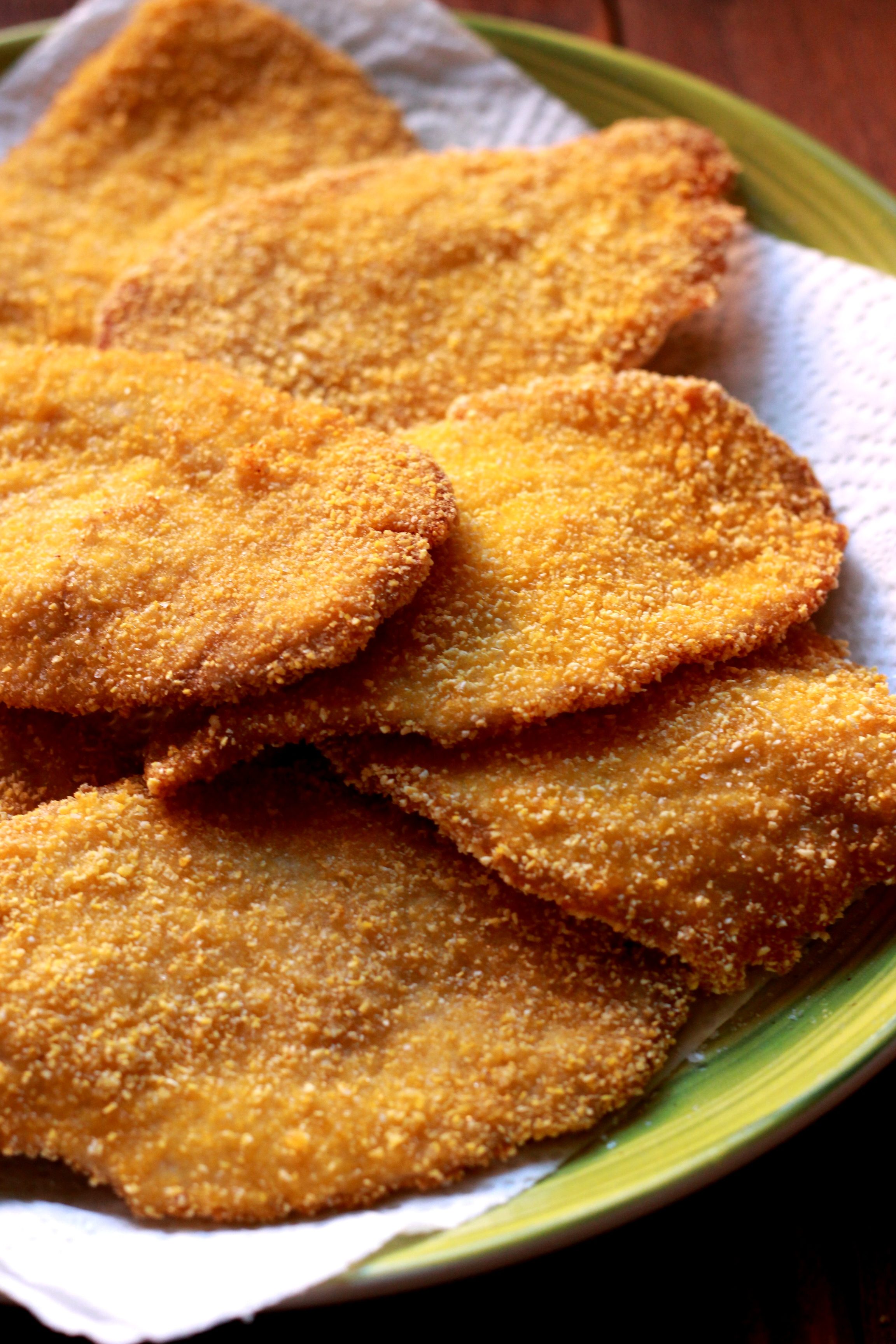 - Scolate le fettine dalla marinata e panatele abbondantemente nella farina di mais.
