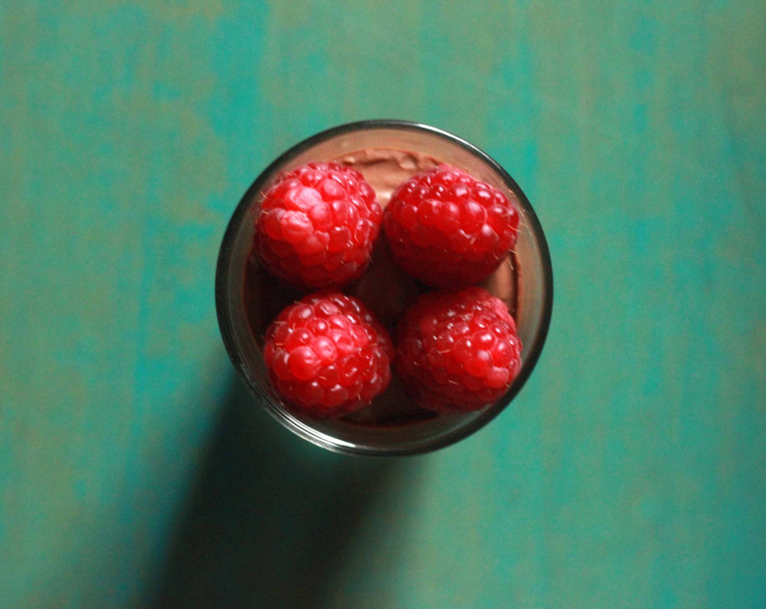 Mousse al cioccolato fondente e lamponi
